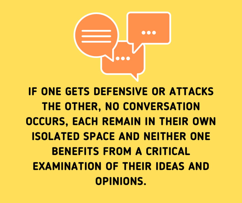 But most importantly, communication is crucial to either examine and understand one’s position as true or false, or to converse with others to help them grow in order to have larger scale communal growth. If someone for instance, says something that seems or is offensive. If we stop communicating, or start attacking, because of that opinion, we will never be able to either make them recognize their mistake or we ourselves understand our mistake. Living in such bubbles, these voids, in which all we hear are echoes of our own thoughts disconnected from reality and others, can only be detrimental to our own growth as well as that of the society we live in.